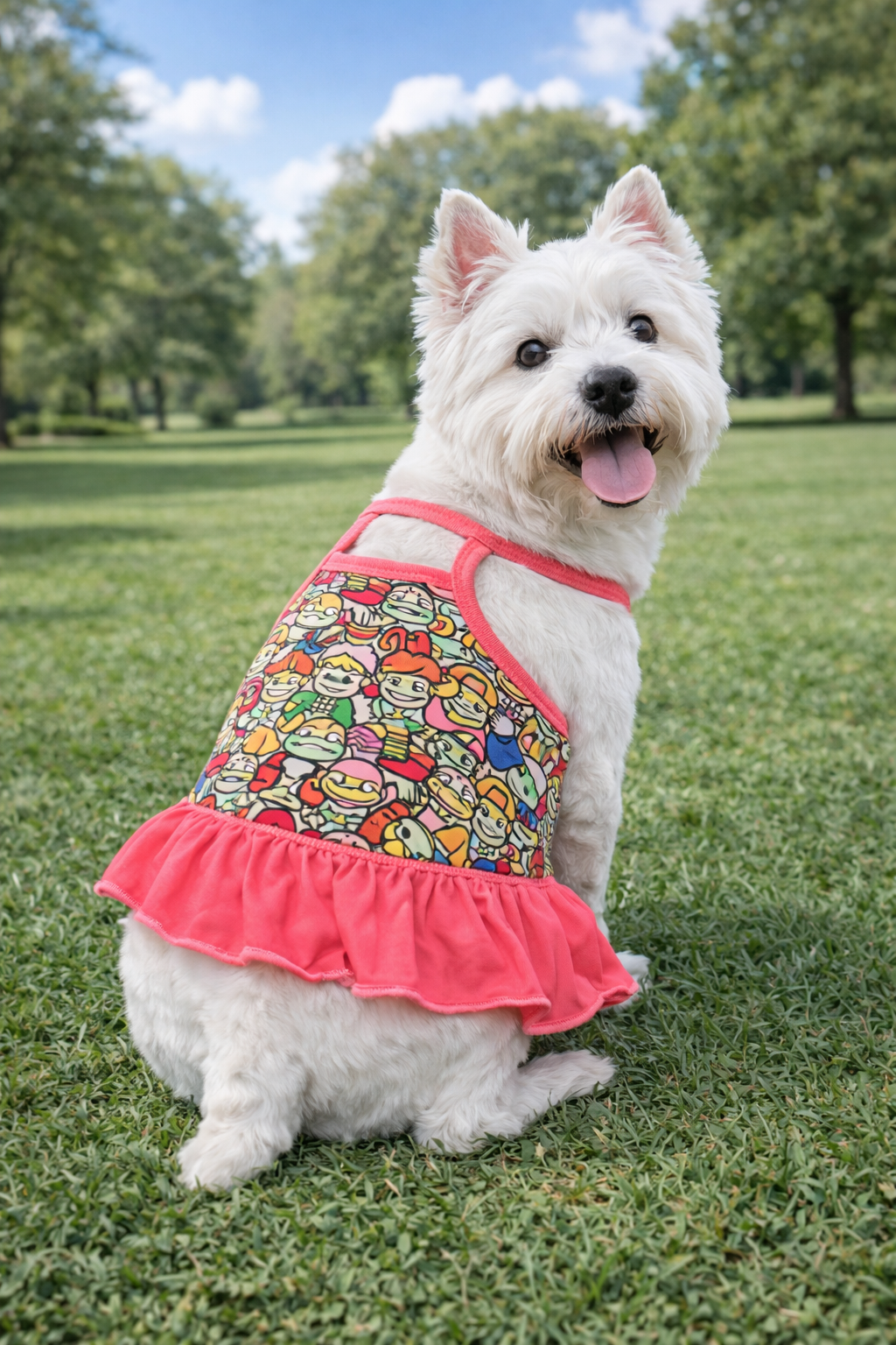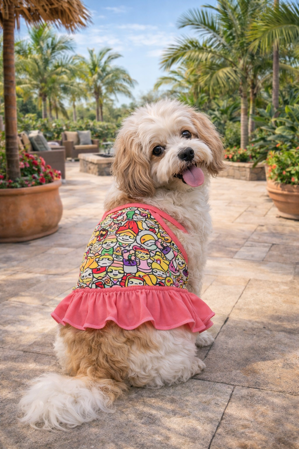 Stylish princesses need both elegant and creative designs in their wardrobe, to suit any situation. This artsy dog ruffle dress is part of the latter category and it's simply adorable. The vibrant colors and eye-catching pattern will put any pooch in the center of attention. Perfect for even tiny pups, this item will be loved by any pet owner who is looking for a dress for small dogs that actually fits as it should. Thanks to our incredible wholesale prices, you can make sure that your customers find this cute dress in your shop and you can give your business a boost at the same time.