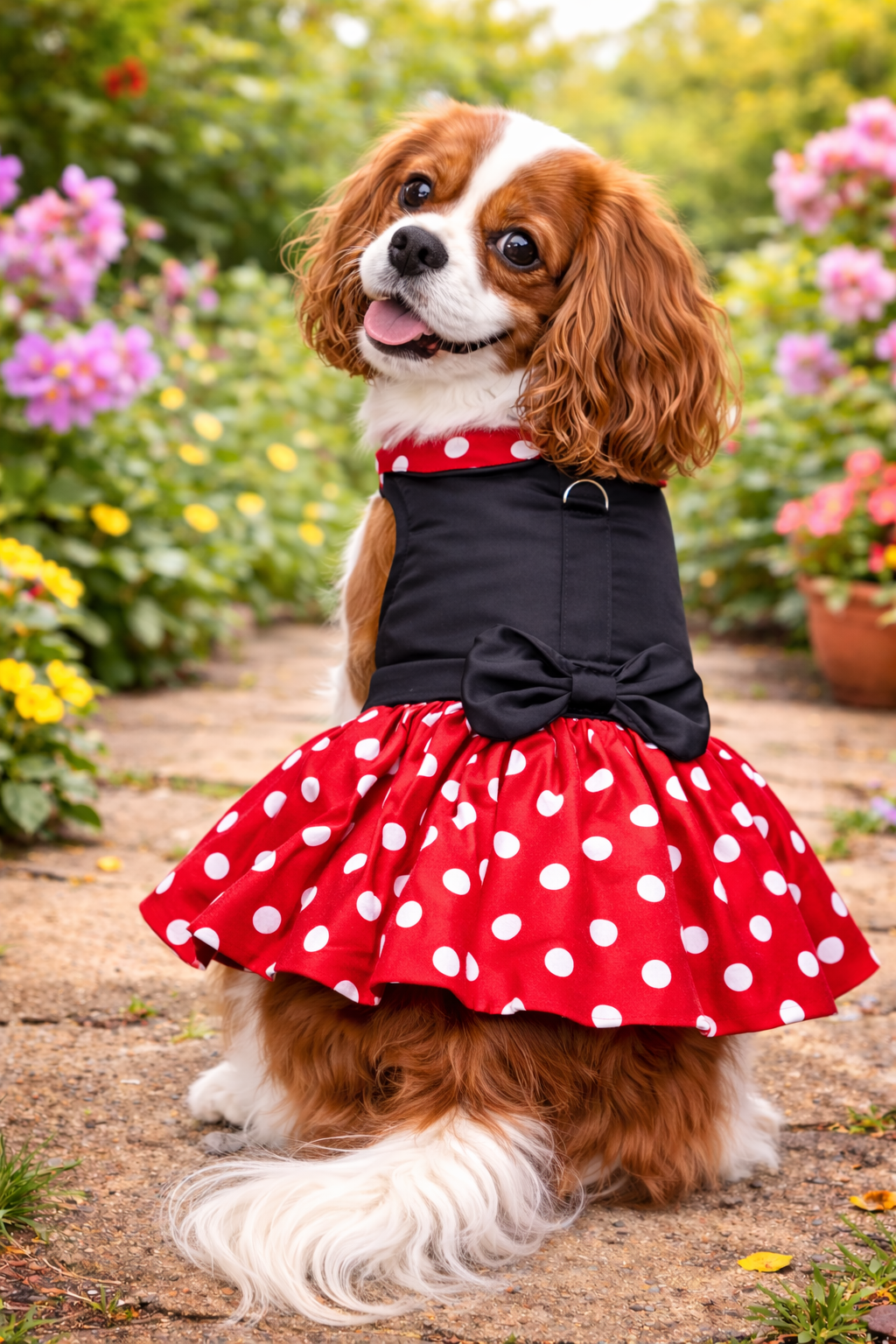 Add timeless charm to your pet’s wardrobe with the Parisian Pet ‘Red Dots Minnie Dress’, a playful red polka dot dog dress designed for both dogs and cats. Inspired by a classic Minnie dog dress, this adorable outfit features a cheerful polka dot pattern that makes every moment picture-perfect. Ideal for birthdays, holidays, or everyday fun, this polka dot pet dress blends style and comfort effortlessly. Crafted from soft, breathable fabric, it delivers comfortable pet clothing that allows easy movement throughout the day. Perfect as a small dog dress yet equally charming for cats, this design is loved by pet parents searching for a cute dog and cat dress with personality. Whether styled as a dog dress for special occasions or worn casually, this stylish pet dress stands out with its iconic look. It also works beautifully as a fancy dog outfit for themed events and photoshoots. Elevate your pet’s style with this dog and cat fashion dress that combines playful design with everyday wearability.