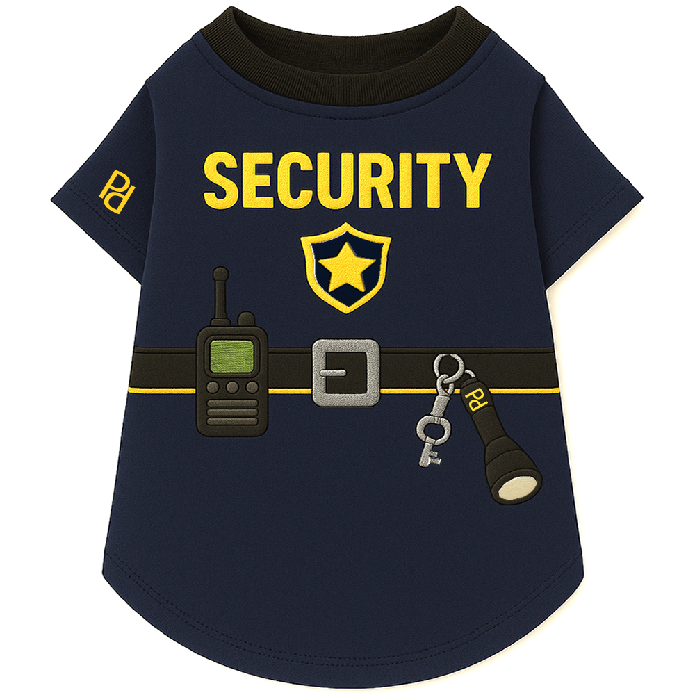 Keep your store secure—and adorable—with the Security Woofficer dog shirt from Parisian Pet. This hilarious and stylish t-shirt features a printed walkie-talkie, keychain, and belt, transforming any pup into a four-legged officer on duty. Designed with comfort and durability in mind, it’s made from a breathable cotton-poly blend and offers a flexible fit for active dogs.
